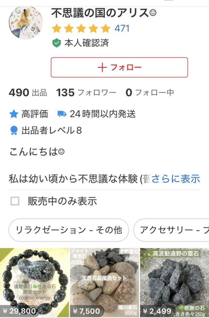 上記サイトは遠野の石と語り偽物を販売している可能性があります。
